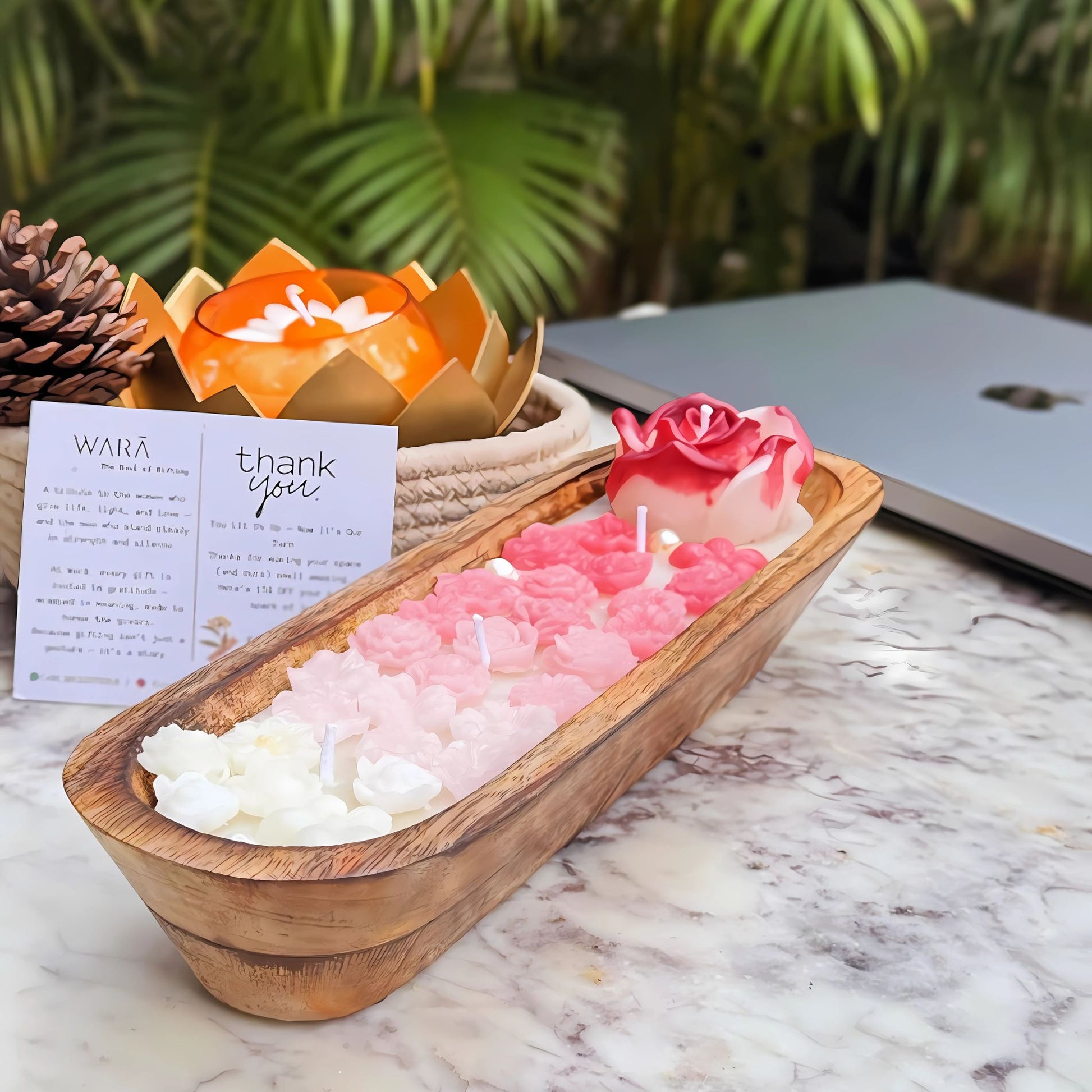 Indulge in the luxurious, sensual scent of whire oud. Made of pure soy wax, the white flowers on white base design adds a touch of elegance to any room. The warm glow and fragrant aroma will transport you to a state of pure relaxation and indulgence. Perfect for a peaceful evening in on our luxurious sheesham wood.